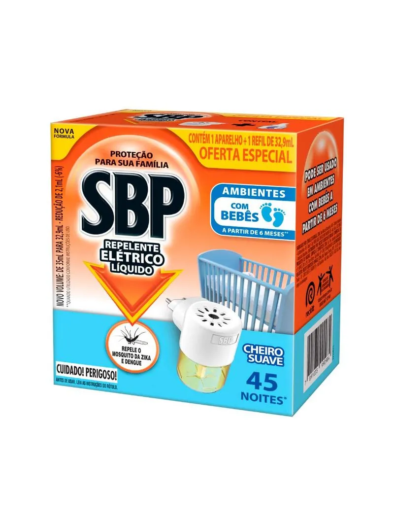 Aparelho+Refil Inseticida Elétrico Liquido SBP 45 Noites